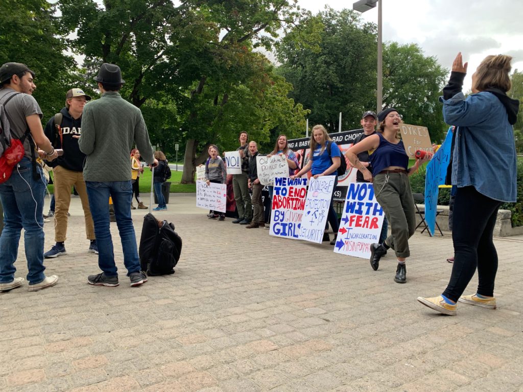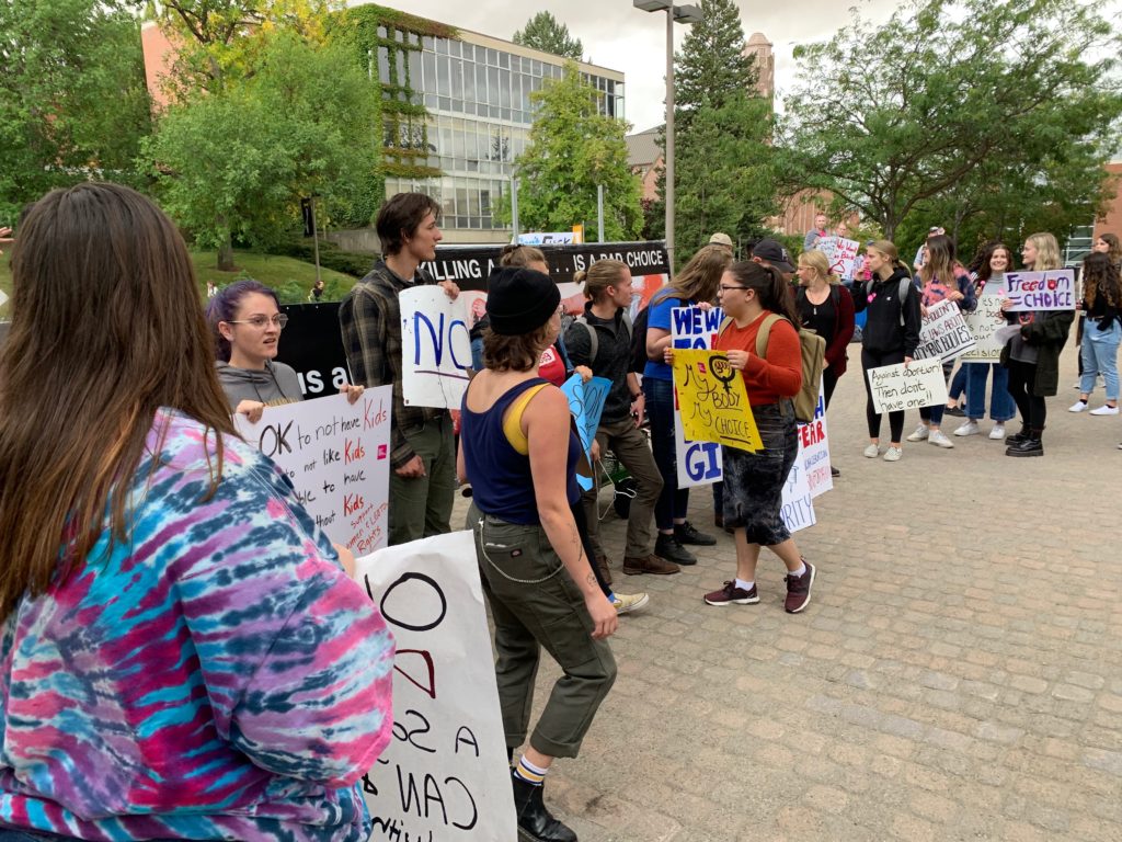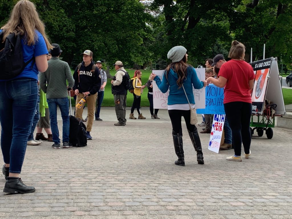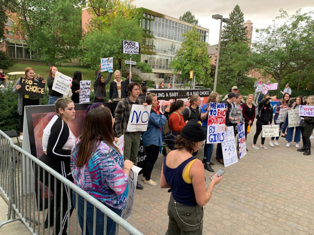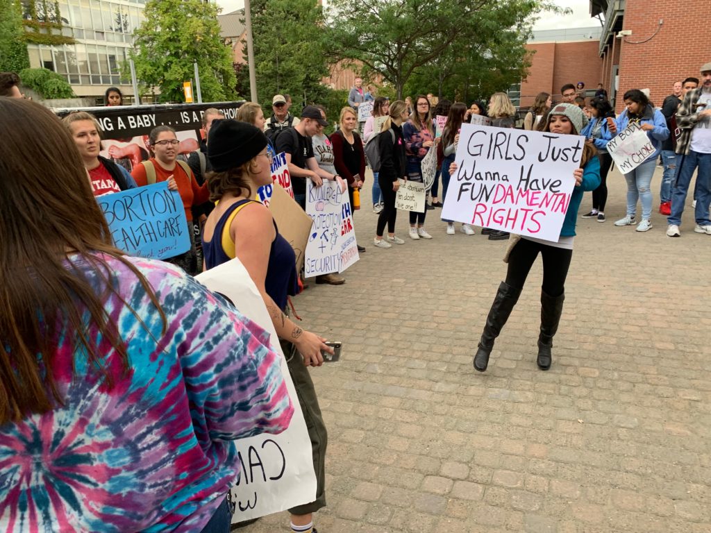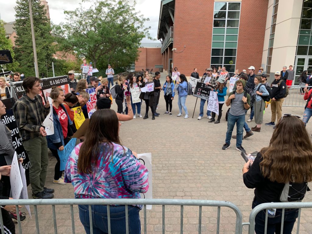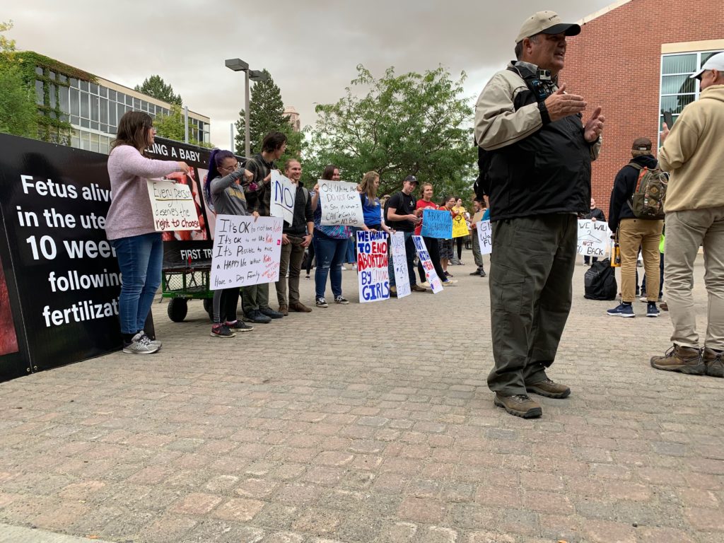 Student counter-protests were met with police intervention during Wednesday’s anti-abortion demonstration in the Idaho Student Union Building Plaza.