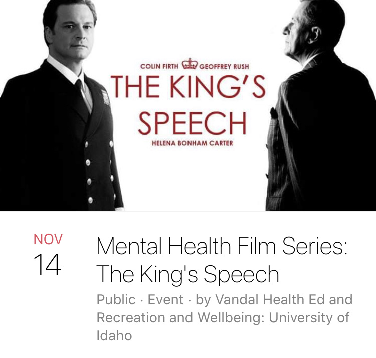As part of Vandal Health’s is mental health film series, “The King’s Speech” will be showing this week. Come down to the University of Idaho Library Classroom and watch a film. Entry is free, no tickets are required to attend.