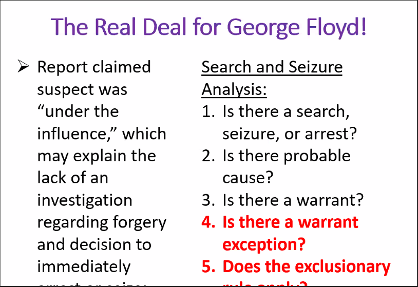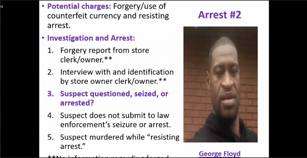 Sanders explained the process of arrest and presented two cases to the audience: those of George Floyd and Anthony Brennan III.