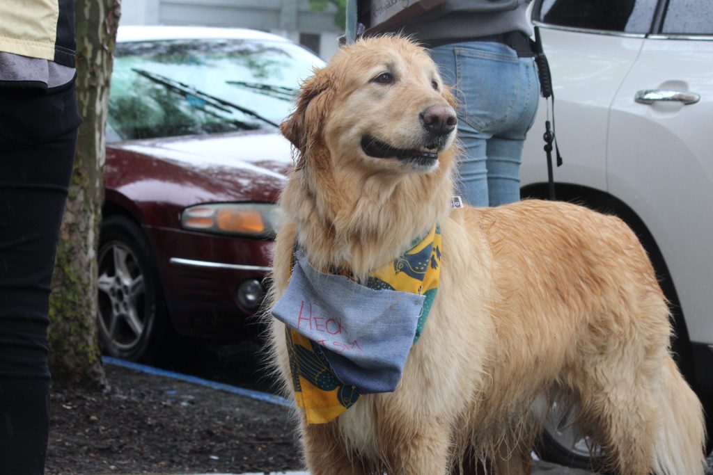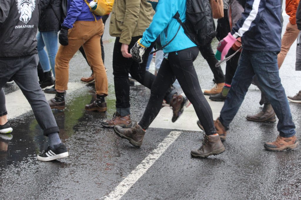 Nearly 70 people donned raincoats and umbrellas while they chanted and marched at the protest’s peak. Tarver said just over 50 people had responded “going” to the Facebook event.