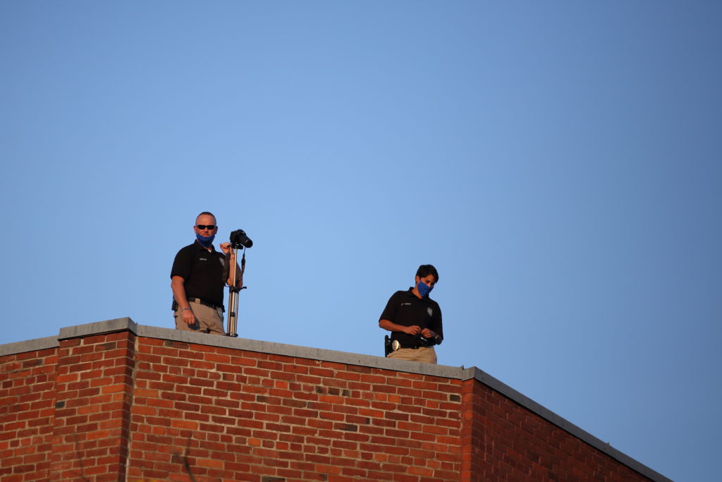 Police monitored the protest from the rooftop of the State Farm building, but did not get involved with today’s proceedings.