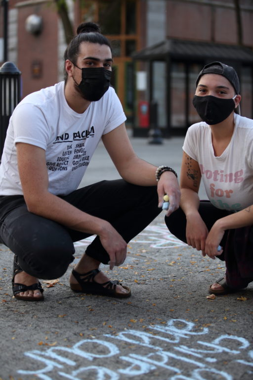Across the street from the Psalm Sing, Black Lives Matter supporters and other counter-protestors gathered, writing messages in chalk on the ground.