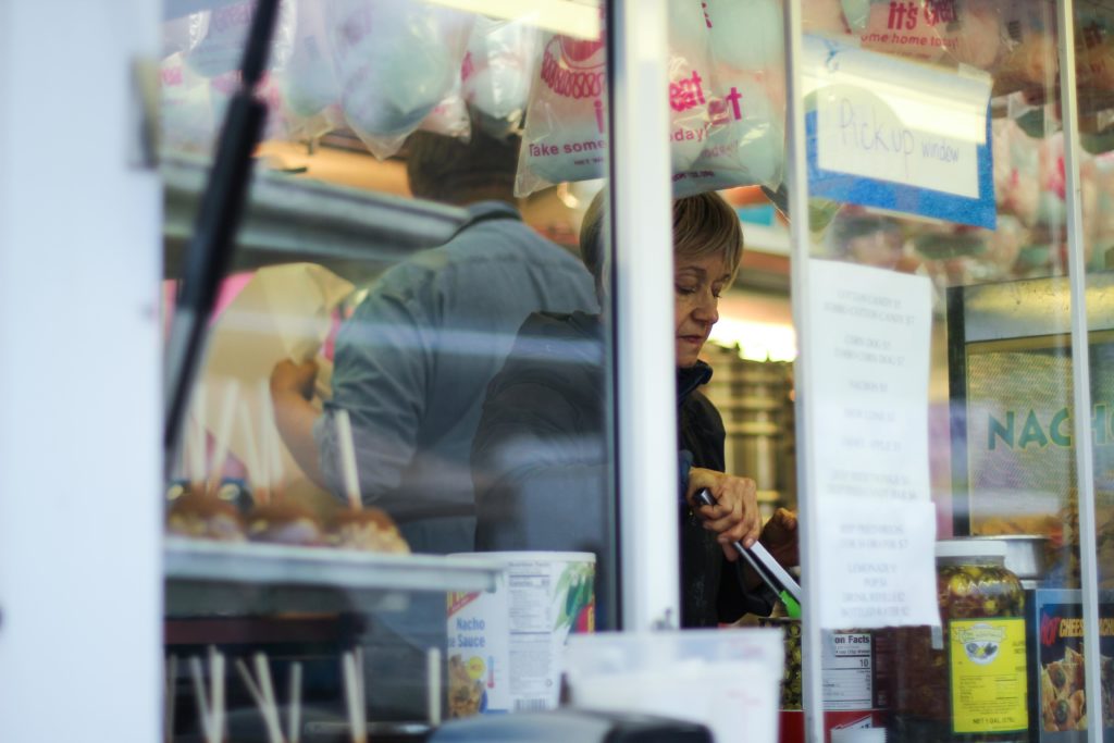 A woman refills condiments in the food truck | Hailee Mallett | Argonaut