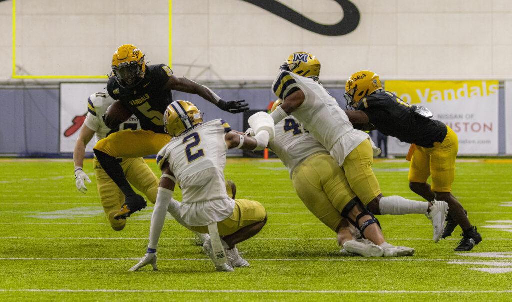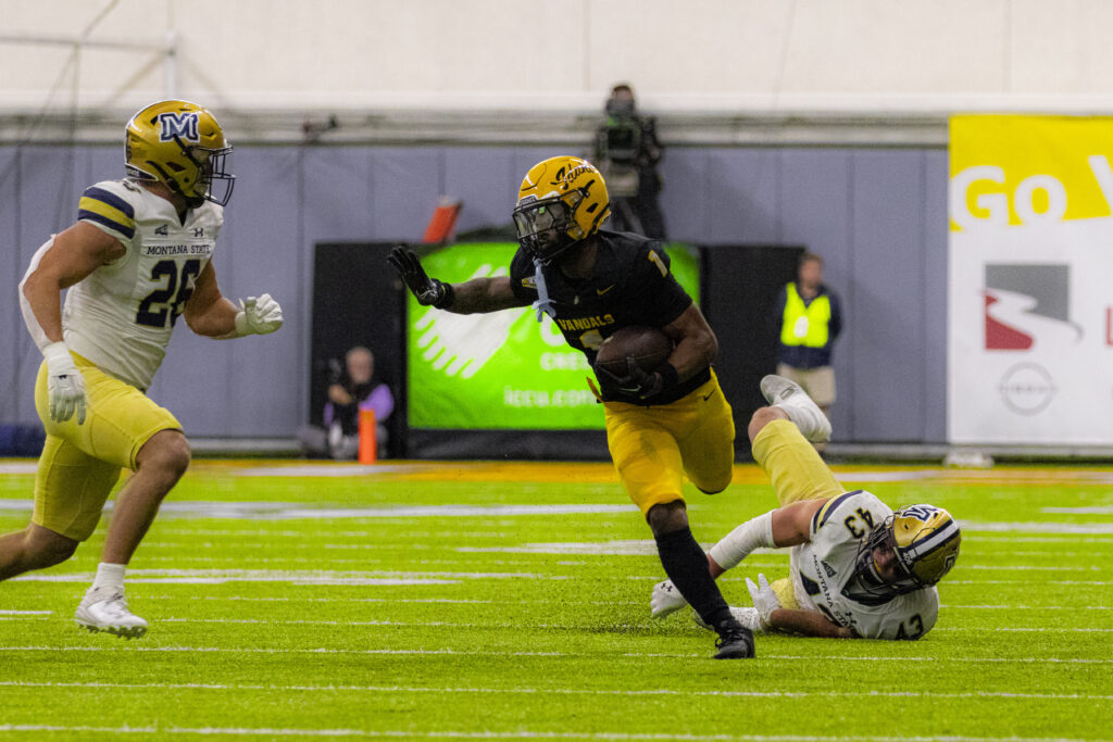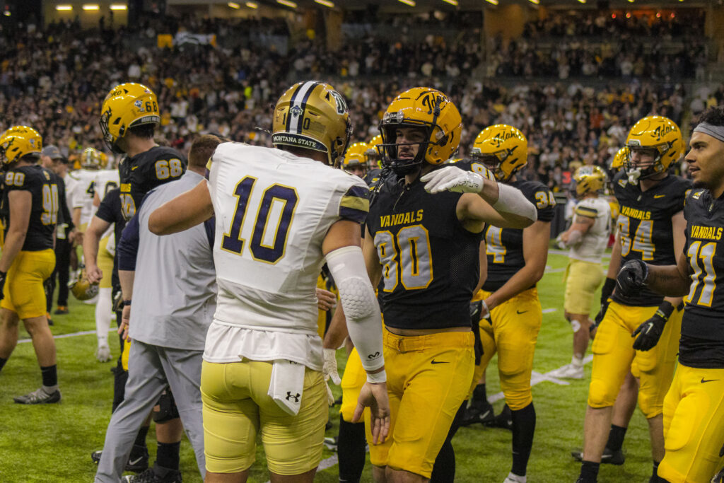 Montana State had one final chance to drive down the field to try and win the game. On a critical play, redshirt sophomore d-linemen Malakai Williams made a huge eight-yard sack, putting the Bobcats in a tough third-and-18 situation. On fourth down, Montana State’s 6-foot-9-inch-tall kicker Brendan Hall attempted a game-tying 44-yard field goal. He missed wide right with 22 seconds remaining. The Vandals were able to kneel it out and take the win, 24-21.