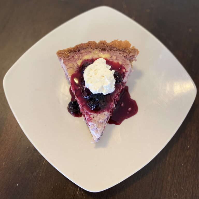 Spring is here! What better way to celebrate than with a fresh, fruity dessert? This lemon blueberry cheesecake is a great introduction to making cheesecakes. By using a pre-made crust, there is very little prep work required. The fresh lemon juice and zest make the blueberry flavor pop!