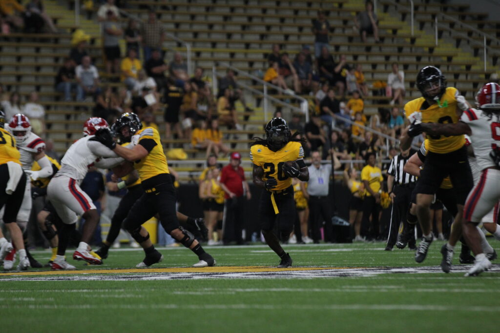 The Vandals donned yellow throwback jerseys in honor of the Kibbie Dome’s 50-year anniversary celebration.