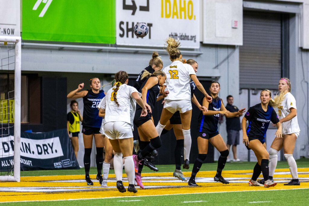 Two minutes in, the Vandals earned a corner kick. Sophomore defender Bella Gissendanner trotted to the corner flag and delivered an inch-perfect cross that found Farley’s head. In almost the exact spot where she’d been scoring headers during warmups, Farley rose up and powered her shot into the top right corner to give Idaho the lead, a lead that lasted just two minutes.