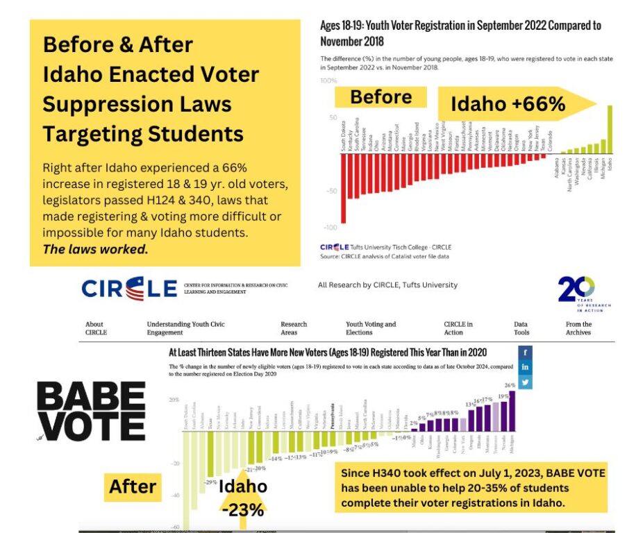 When Idaho’s legislature passed House Bill 124 in 2023, preventing the use of student IDs for voter registration, the League of Women Voters and Babe Vote filed suit.