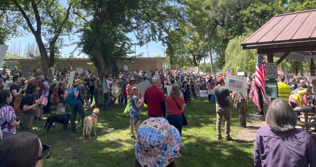 According to the No Kings website, the event is in response to the president sending militarized agents into communities, silencing voters and handing billionaires giveaways, while families struggle.