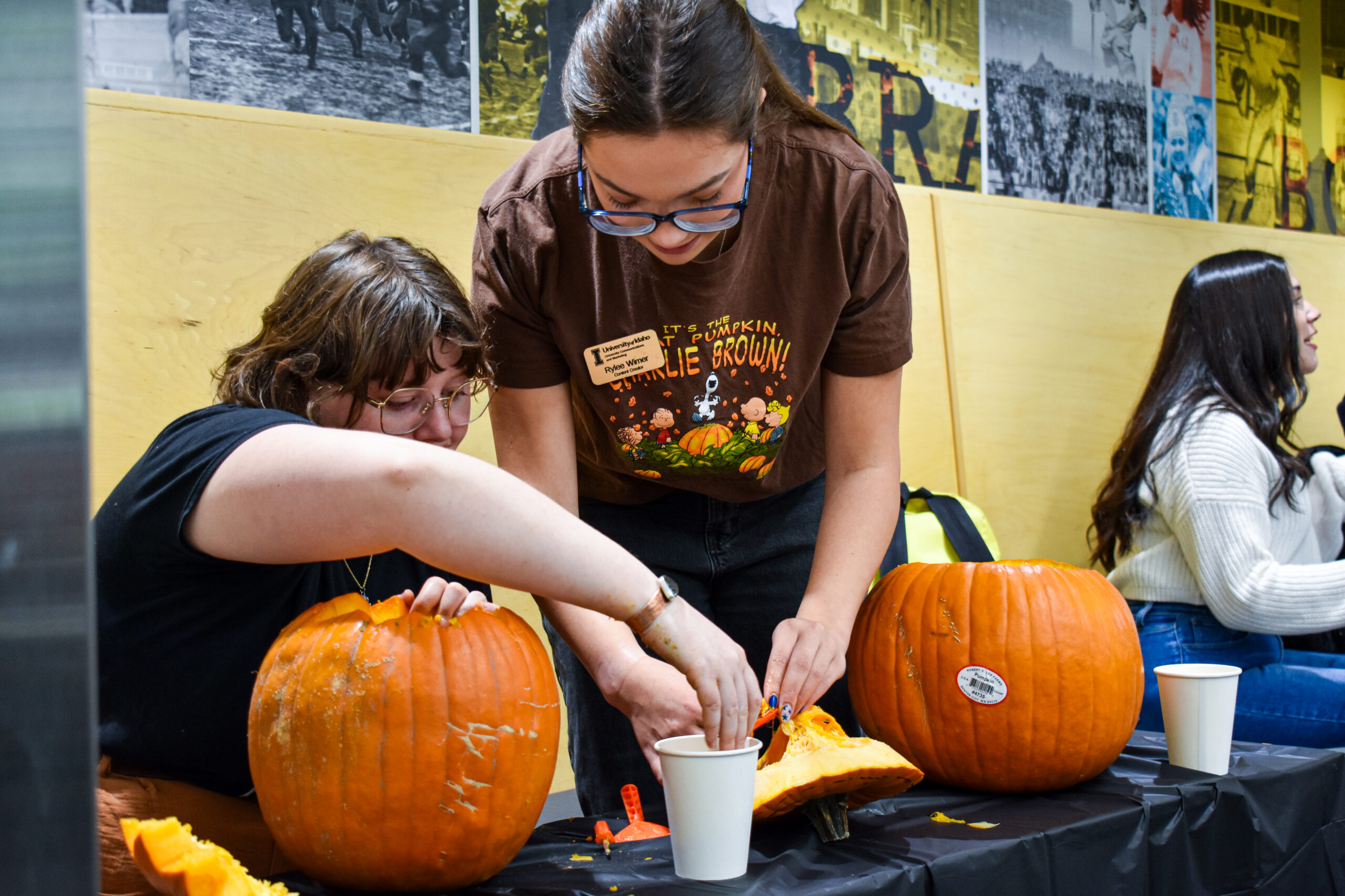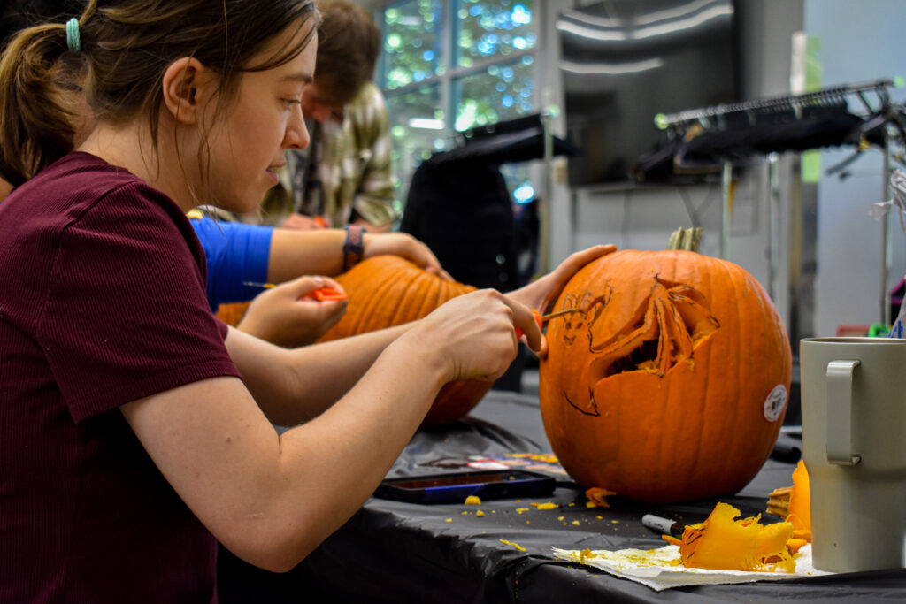 Students were able to choose from multiple designs to carve into the pumpkin or even freestyle their art. While most people created the classic jack-o’-lantern face, others took it a step further, carving bats, cats or even dragons.