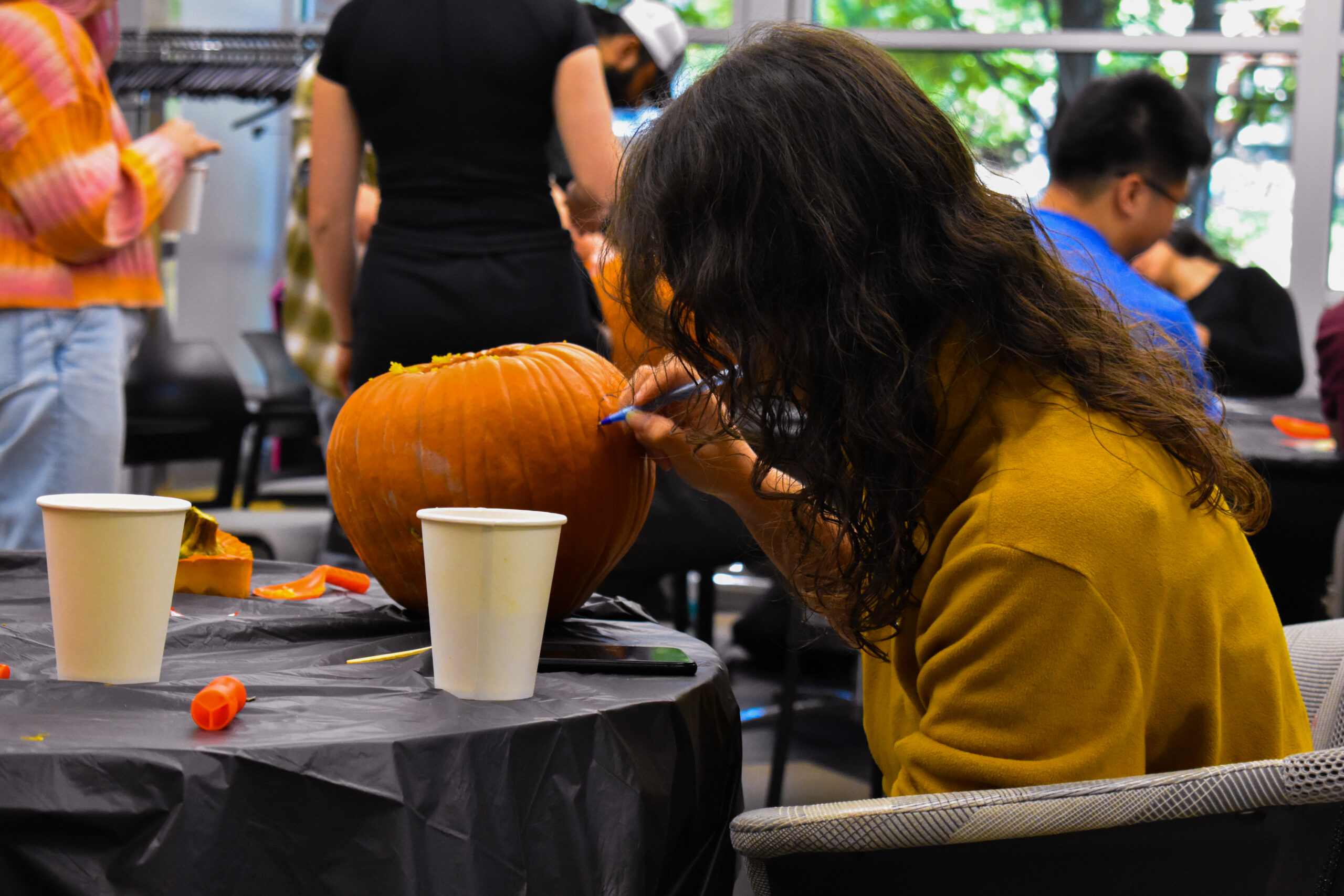 The event got messy fast with pumpkin guts, seeds and goo torn from every pumpkin. IPO and DSI served apple cider and played spooky music to get attendees into the Halloween spirit.
