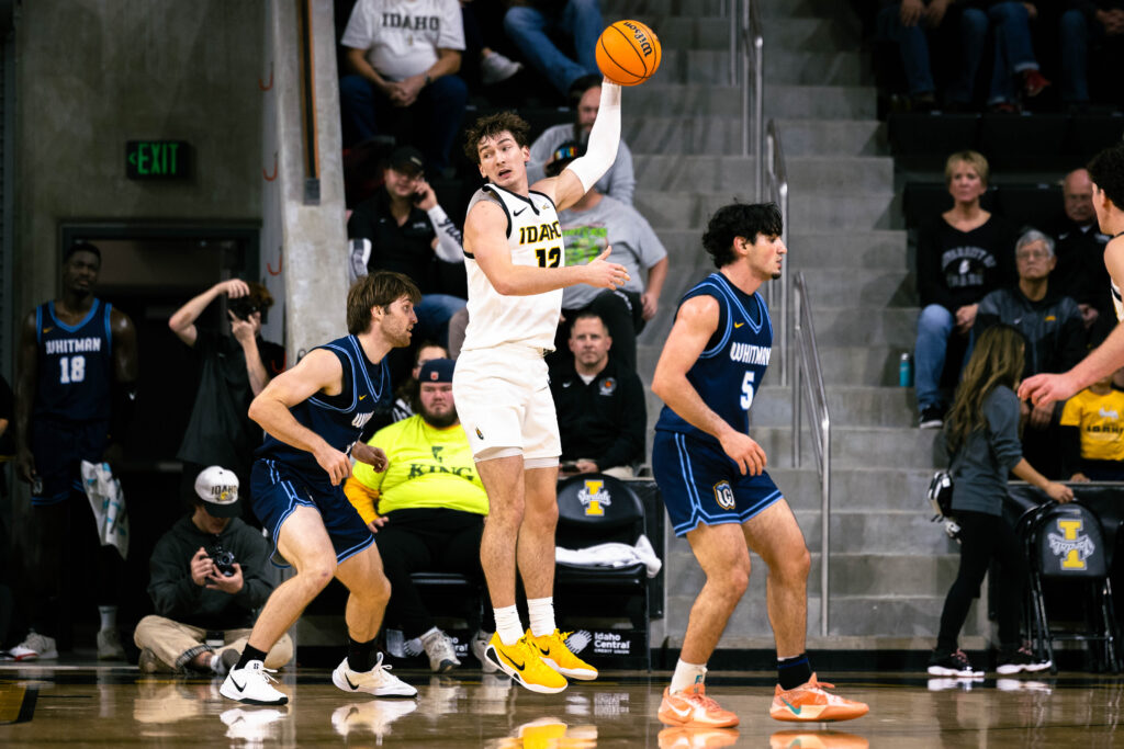 After only scoring seven points against WSU, Kolton Mitchell was flying all over the court against Whitman, finishing with 17 points, six assists, two steals and five rebounds. With the absence of Kristian Gonzalez, several Vandal guards rose to the occasion against Whitman. The team shot 48% on three-pointers and went 16 for 18 at the charity stripe.