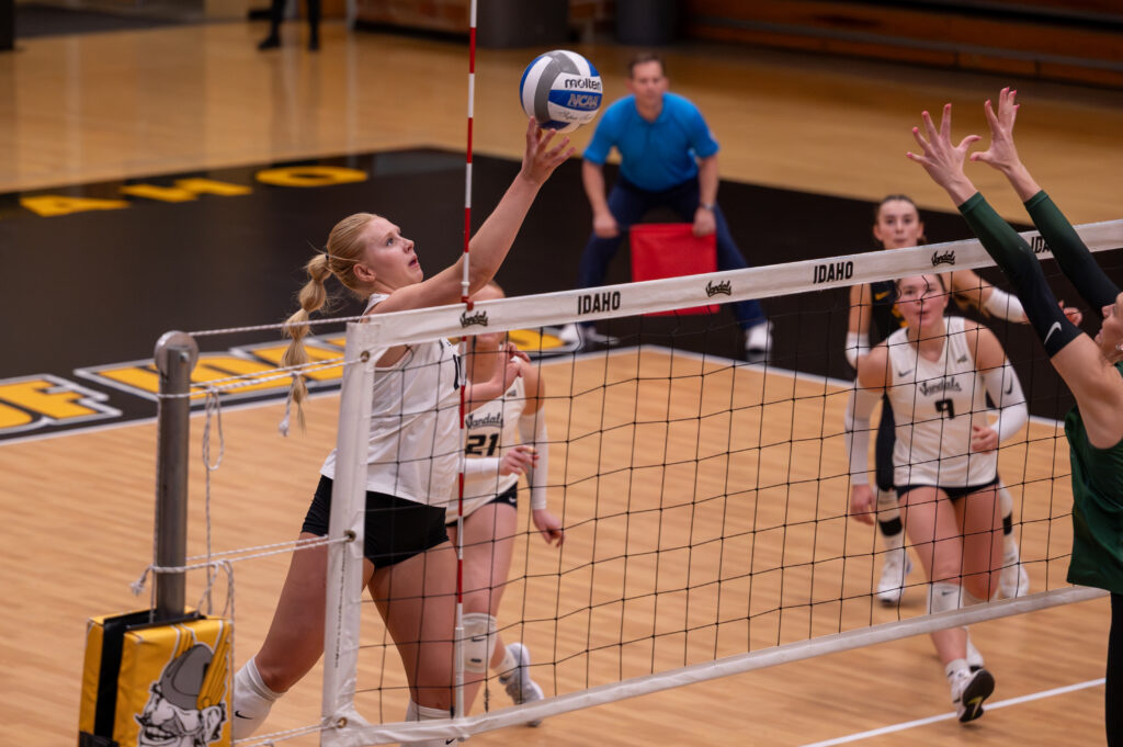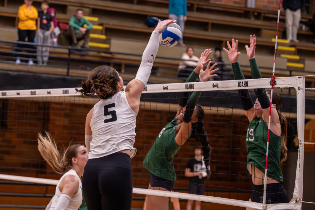 Memorial Gymnasium was on its feet with the Idaho Vandals volleyball team one point away from defeating Portland State. The action went back and forth before it recycled to redshirt junior outside hitter Cayton White, who found freshman outside hitter Kiana Greer. Greer tipped it off the Vikings to get the point and the 3-0 win for the Vandals, their first sweep at Memorial Gymnasium since Oct. 28, 2021, against Southern Utah.