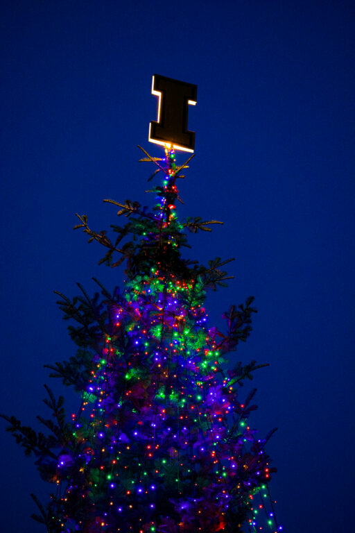 After the tree was lit, students from the Lionel Hampton School of Music broke into Christmas carols. Eventgoers did not immediately disperse; instead, they stayed to admire the lights and take pictures with UI mascot Joe Vandal.