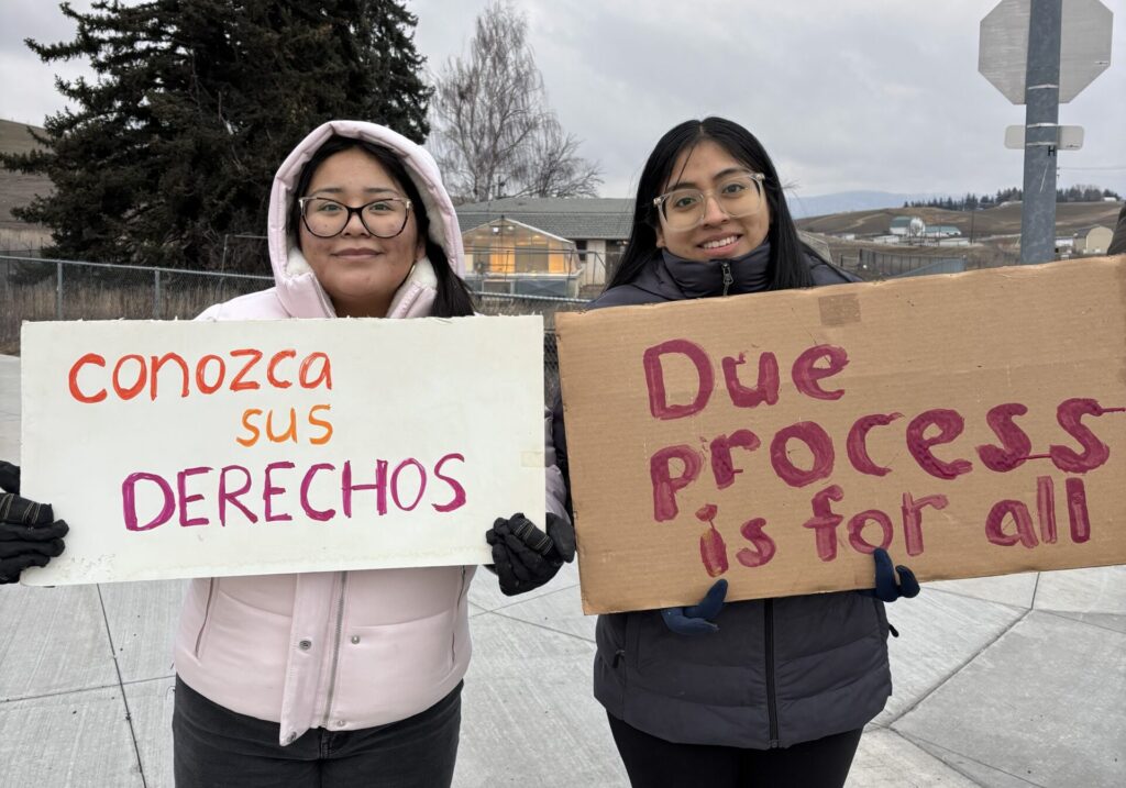 Around 25 people showed up in 27-degree weather and held signs reading: “Skin color is not probable cause” and “ICE agents are criminals.”