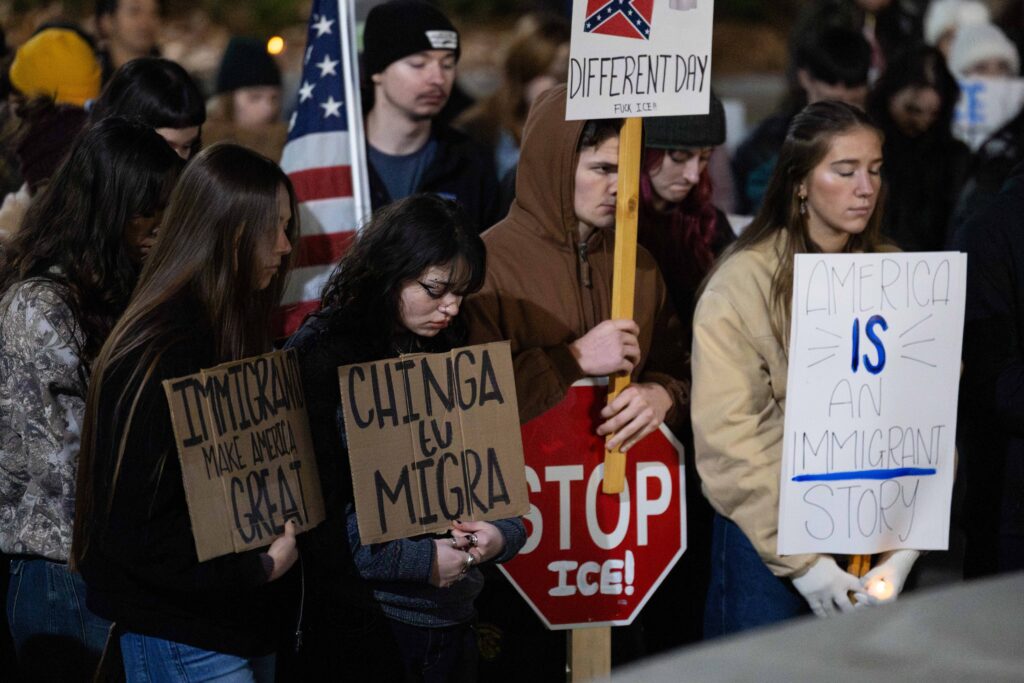 An “I like my ICE crushed” protest was held in the University of Idaho library courtyard, with between 150 and 200 people participating, on the evening of Friday, Jan 30.