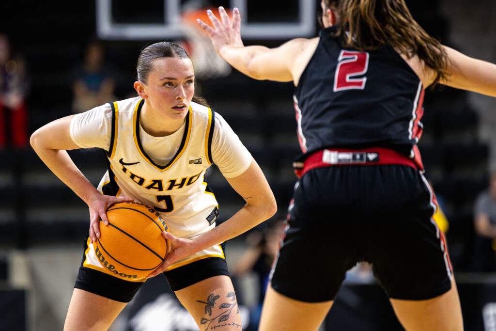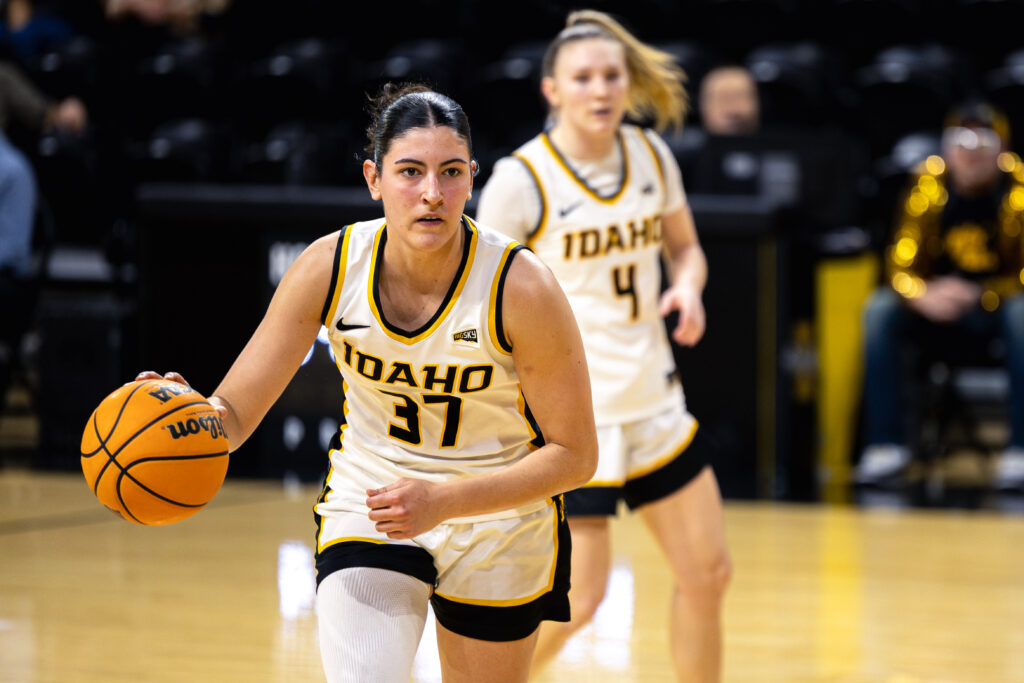 Hassmann got back to her left hand, spun and split two defenders to get the layup to fall. On the next possession she double pump-faked and laid it off the glass to extend the Vandals lead. Hassmann and sophomore guard Ella Uriarte drilled clutch free throws in the final seconds to put the game away and move the Vandals record to 14-1 in ICCU Arena.